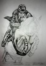 | 21. Марайя. Портрет (формат А3) | 22. "Двое" холст, масло, формат 80х60 | 23. Утренний букет (формат А3) | 24. "Всадник" (незаконченная) бумага, карандаш, тушь, А3 |